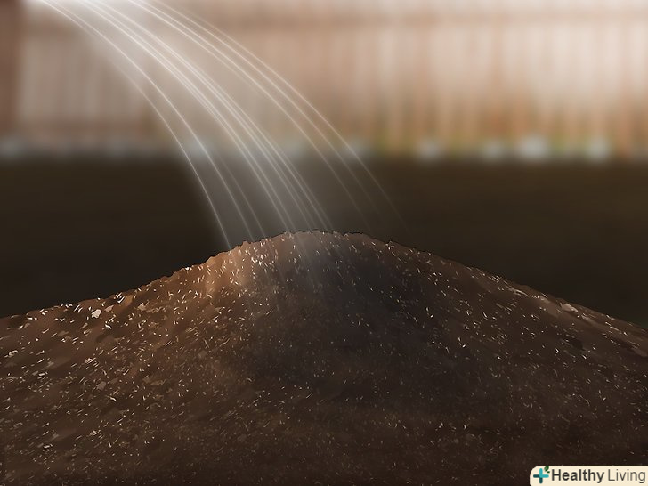Накрийте посаджені насіння компостом. якщо ви вже удобрювали грунт до цього, можете пропускати цей крок. Якщо ж ні, додайте тонкий шар гною або компосту в зони посадки гарбузів. Компост допоможе позбутися від бур'янів і підживить насіння.- З належним доглядом насіння гарбуза повинні зійти вже через тиждень.