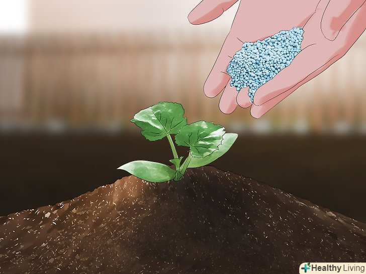Удобрюйте ваші гарбуза. як тільки побачите, що рослини починають сходити, додайте їм трохи добрива – це скоротить час росту на пару тижнів, а так само рослини будуть здоровими. Сходіть в ваш садівничий магазин і запитайте з приводу відповідного добрива, яке ви можете використовувати для ваших грядок з гарбузами.