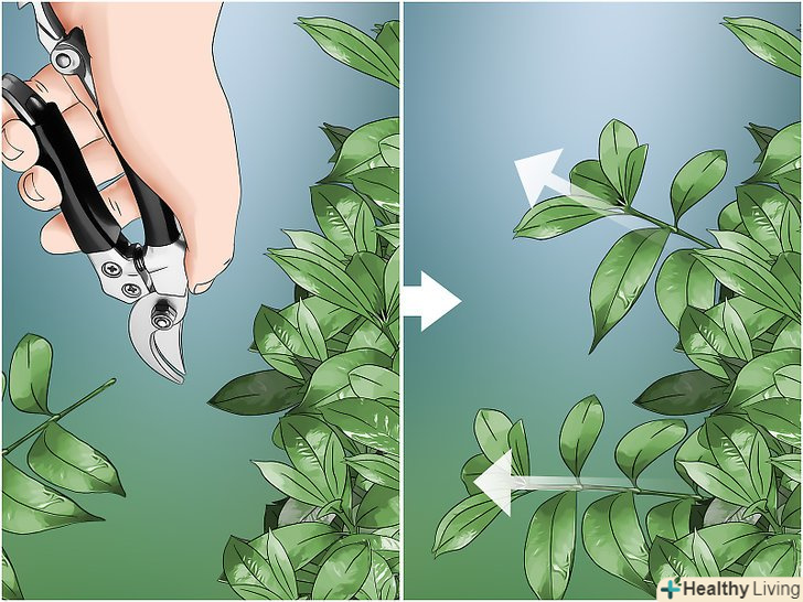 Проведіть більш ретельну обрізку там, де хочете стимулювати нове зростання. обрізку проводять не тільки для того, щоб надати кущу потрібну форму і розмір, але і щоб стимулювати нове зростання в певних місцях. Якщо ви відріжете Гарденію майже біля самої землі (на висоті 5-8 см), то через деякий час ця ділянка стане ще пишніше. [10]