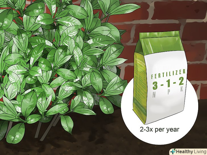Удобрюйте Гарденію 2-3 рази на рік. Гарденію корисно удобрювати після обрізки. Купуйте добриво з наступними співвідношеннями азоту, фосфору і калію: 3-1-2 або 3-1-3. Прочитайте інструкції на упаковці, щоб дізнатися, скільки добрива використовувати, і змішайте його з землею навколо куща. [12]