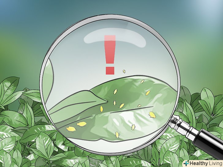 Перевіряйте кущ на присутність жуків. Остерігайтеся появи борошнистих червців, гусениць, попелиці, білокрилок, трипсів і павутинних кліщів. Якщо ви побачите кого-небудь з них на кущі, спробуйте використовувати натуральний засіб. Якщо ж зараження дуже сильне, можливо, вам доведеться використовувати інсектицид. [13]- Щоб позбутися від попелиці, обприскуйте її водою раз в 2-3 дні, поки вона не зникне.