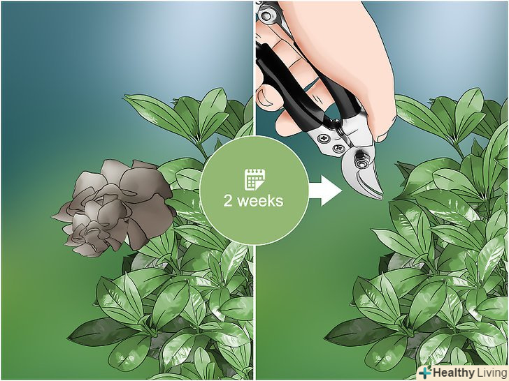 Проводьте обрізку в правильний час. якщо обрізати кущ до того, як він закінчить цвісти, можна нашкодити зростаючим квітам. Замість цього приступите до обрізки гарденії вже після того, як сезон цвітіння закінчиться, але до того, як денна температура опуститься нижче 18 °C. ви зрозумієте, що прийшов час проводити обрізку, коли квіти почнуть в'янути. Обріжте кущ через 1-2 тиждень після того, як квіти зів'януть. [3]