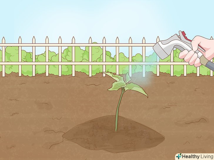 Полийте сад. молодий сад повинен підтримуватися вологим весь час. Якщо саджанці висохнуть, вони найімовірніше загинуть, не встигнувши дозріти. Використовуйте Садові шланги, щоб зрошувати територію водою вранці і ще раз опівдні.- Часто перевіряйте грунт. Якщо вона виглядає сухою, полийте її ще раз.
