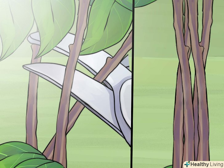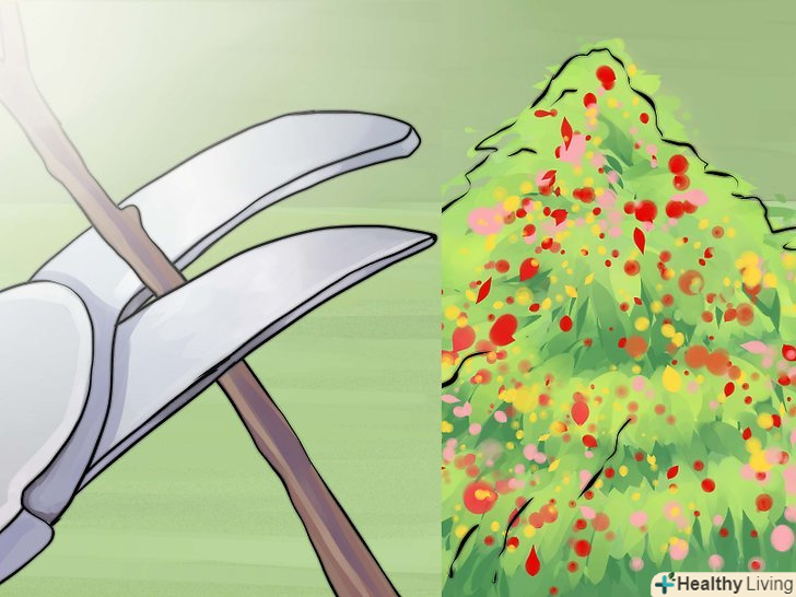 Прорідити ваше рослина. щоб кущ не став занадто щільним, прорідити деякі гілки в середині рослини, щоб позбавиться від перевантаження. Це означає обрізку деяких гілок, які роблять ваш кущ занадто густим.