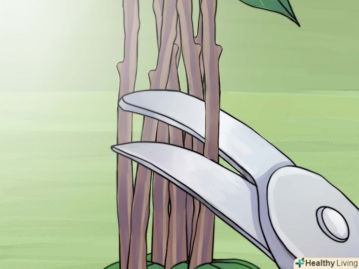 Видаліть всі небажані відростки. можливо, під час обрізки ви також захочете видалити всі відростки, паростки з коренів рослини. Це запобігає розмноженню рослини через відростки. Для цього:- Відріжте відросток, як можна ближче до основи кореня. При необхідності зішкребіть трохи грунту навколо кореня. Спробуйте відірвати відросток, а не обрізати його. [1]