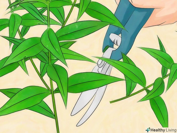 Підрізайте флокси. для високих сортів флоксів залишайте у кожної рослини по 5-7 стебел і обрізайте інші. Це поліпшить циркуляцію повітря між ними, збільшить кількість квіток і зменшить ймовірність хвороб. Прищипніть верхівки залишилися стебел, щоб уповільнити їх зростання і зробити рослину більш пишним.- Почніть підрізати флокси високих сортів, коли вони підростуть до 15 см.більш низькі флокси, які не є почвопокровними, також можна підрізати, коли вони досягнуть 10-15 см у висоту.