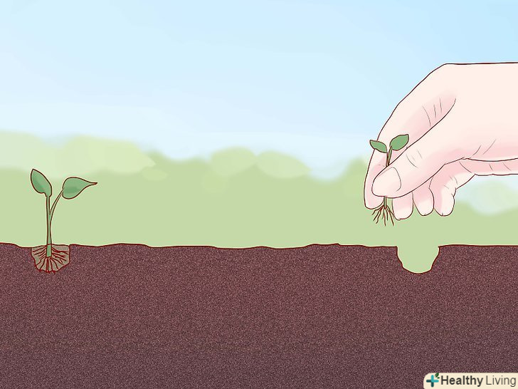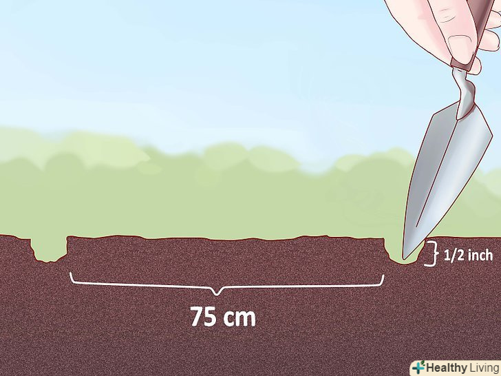 Підготуйте ділянку. садової лопаткою виройте маленьку ямку для рослини. Якщо ви садите насіння, то кожне насіннячко повинно бути покрито шаром землі менш ніж ½ дюйма. Якщо ви садите розсаду, ямка повинна трохи перевищувати обсяг коренів рослини. Садіть рослини на відстані 75-100 см один від одного (те ж саме відстань між рядами рослин). Ви можете прорідити сходи при необхідності.