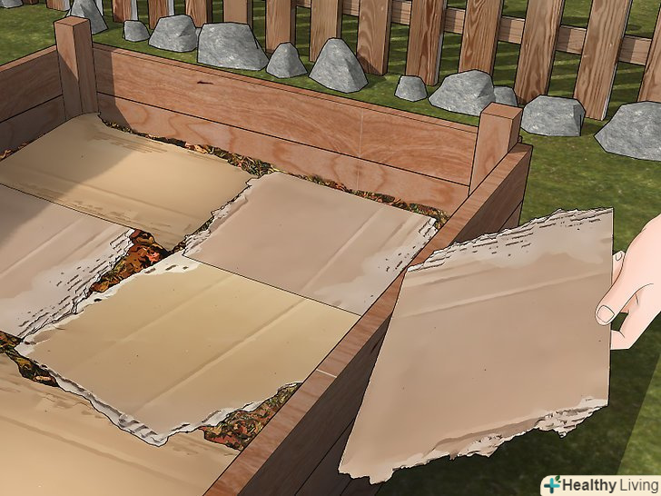 Накрийте компост шаром картону або газет. це дозволить відокремити компост від землі. Якщо ви використовуєте газети, складіть їх в 2-3 шари. Якщо ви вирішили взяти картон, то 1 шару повинно вистачити. Переконайтеся, що шар картону або газет повністю покриває весь компост.