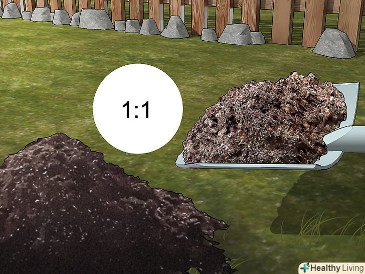 Змішайте землю з компостом у співвідношенні 1:1. мета полягає в тому, щоб у вас була рівна кількість землі і компосту. Зважте землю і компост перед тим, як висипати їх в грядку (якщо хочете, щоб все було точно), або просто виміряйте кількість на око. [5] після того, як ви заповните грядку землею і компостом, добре перемішайте їх руками або садовим інструментом, таким як плуг.- Одягніть рукавички, якщо вирішили перемішати компост руками.