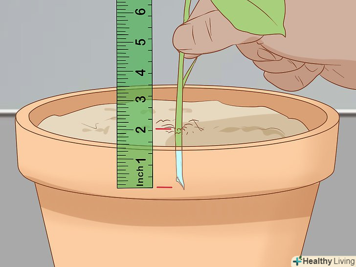 Змочіть грунт і вставте держак. ретельно змочіть грунт (будь-яка пристойна грунт змочується), перш ніж вставляти під кутом маленькі готові живці.- Уникайте посадки у вертикальному положенні під кутом дев'яносто градусів. Кут сорок п'ять градусів буде надавати більший сприятливий вплив кореневищу живця.