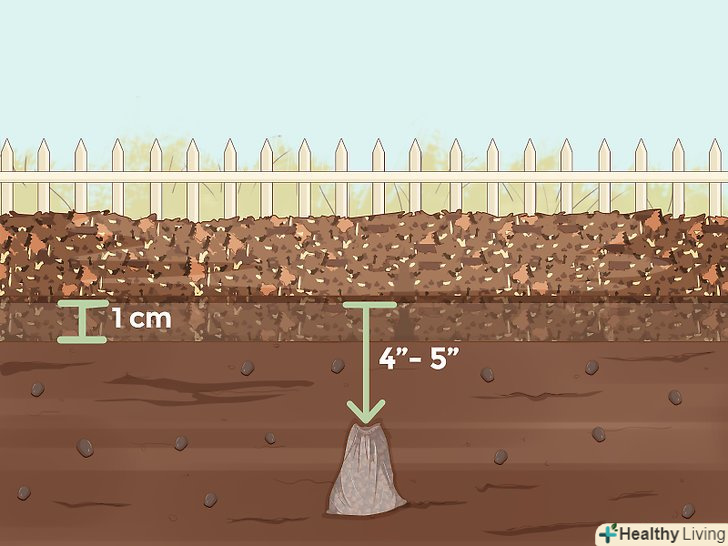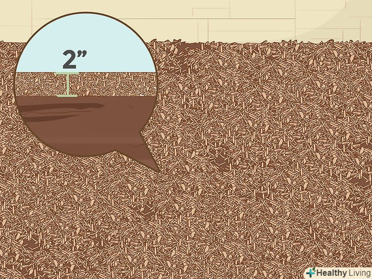 Накрийте ділянку листям або мульчею. поверніть опале листя, які ви попередньо прибрали, або додайте шар мульчі. Це дозволить грунті залишатися вологим, що життєво важливо для женьшеню. Нанесіть шар мульчі товщиною 2,5-5 см але не більше, в іншому випадку паростки женьшеню не зможуть пробитися через товстий шар мульчі. Якщо ви живете в місцевості з холодними зимами і частими морозами, використовуйте 10 см мульчі, але не забувайте зняти частину шару навесні. [27]- Не використовуйте для цих цілей цілі листя дуба. Вони занадто жорсткі і будуть заважати проростанню саджанців. Подрібніть їх, якщо ви купили дубову мульчу. [28]