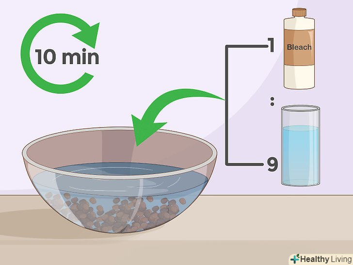 Перед посадкою замочіть насіння в відбілювачі і в воді. якщо ваші насіння проростають, замочіть їх в суміші з господарського відбілювача і води в пропорції 1:9. [22] [23] залиште на 10 хвилин, щоб знищити пори грибків, які часто заражають насіння женьшеню. Насіння, які спливуть на поверхню, швидше за все, порожні і мертві. Їх слід витягти. Решта насіння промийте в чистій воді, а потім віднесіть до місця висадки.- Можете також обробити насіння фунгіцидом, але для початку переконайтеся, що він безпечний для женьшеню.
