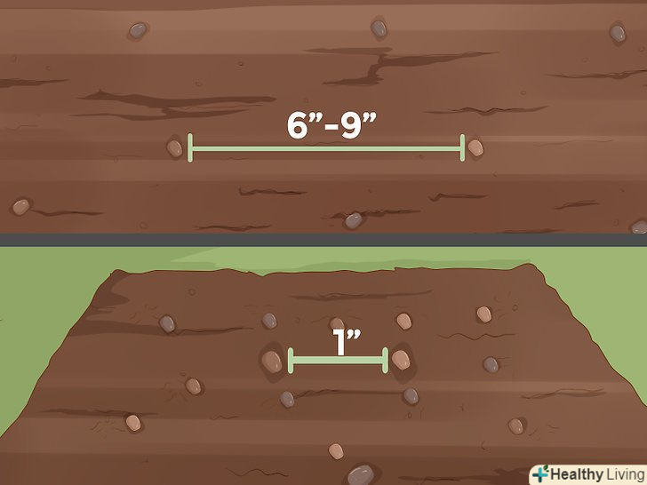 - Саджайте їх на відстані не менше 2,5 см один від одного, якщо у вас багато насіння, і ви хочете зібрати урожай рано. [26] цей метод частіше використовується для польових різновидів женьшеню, так як в густо засаджених ділянках за женьшенем слід добре доглядати, боротися із захворюваннями і шкідниками. Такий спосіб не рекомендується для тих, хто робить це вперше.