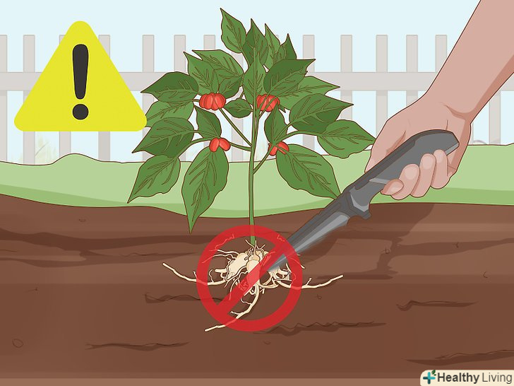Ретельні вивчіть питання, перш ніж використовувати пестициди і труїти шкідників. Одним з головних переваг методу «імітації умов дикої природи» вважається зниження ризику ураження рослин шкідниками і хворобами завдяки великому інтервалу між ними. Крім того, що деякі зрілі рослини або ягоди можна вживати в їжу, подбайте також про цінні коріння. Хвороби не повинні швидко поширюватися між рослинами. [31] якщо у вас виникнуть проблеми, зверніться до місцевого управління дикої природи для отримання інформації про пестициди для женьшеню.- Майте на увазі, що ви ризикуєте втратити сертифікат на ВИРОЩУВАННЯ або продаж дикого женьшеню, якщо будете користуватися пестицидами.