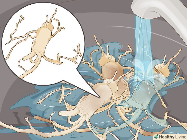 Вимийте і висушіть коріння. залиште коріння ненадовго в відрі з прохолодною водою, щоб відмити їх від землі. Потім викладіть коріння одним шаром на дерев'яний піддон і помийте їх акуратно під раковиною або зі шланга. Коріння не повинні стикатися. Дайте їм висохнути в добре провітрюваному приміщенні при температурі 21-32 градусів Цельсія. Вологість повітря повинна бути між 35 і 45, в іншому випадку коріння висохнуть занадто швидко і втратять свою цінність. [34] перевертайте їх раз на день. Коріння готові, коли вони лопаються при розрізанні. Виберіть один корінь для перевірки.- Не тріть і не мийте коріння занадто енергійно — деякі лікарські хімічні речовини концентруються в кореневих волосках, видалення яких зменшить користь кореня.