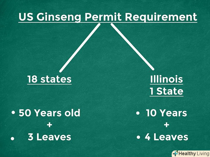 Отримайте всі дозволи або ліцензії, необхідні для вирощування та продажу женьшеню. закони, що регулюють ВИРОЩУВАННЯ женьшеню в різних штатах відрізняються. Часто потрібні спеціальні дозволи або ліцензії, особливо якщо ви збираєтеся вирощувати женьшень для комерційного збуту. Вивчіть закони вашого регіону і зверніться до місцевого Сервісу або СІЛЬСЬКОГОСПОДАРСЬКЕ управління штату або торговий відділ, щоб з'ясувати, що вам потрібно зробити для вирощування женьшеню. Вам також слід вивчити органічну сертифікацію задовго до посадки насіння. Метод "імітації умов дикої природи", описаний з цієї статті, є органічним.- З 19 американських штатів, в яких дозволено вирощувати женьшень, в 18 дозволено збирати урожай, коли рослинам виповниться не менше 5 років, і на ньому з'явиться не менше 3 листків, в той час як в штаті Іллінойс рослині повинно бути не менше 10 років, і у нього повинно бути хоча б 4 листа. [9]