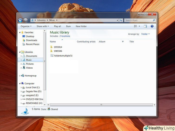У цьому прикладі, припустимо, у нас є кілька папок з музикою, які необхідно стиснути, щоб потім можна було зробити копію на зовнішньому жорсткому диску. Ці папки містяться всередині однієї великої папки, яка називається "Моя музика".