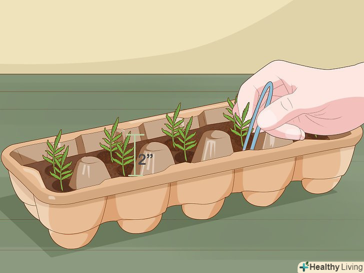 Прорідити розсаду, коли рослини досягнуть 5 см у висоту. візьміть ложку або інше невелике пристосування. Будьте обережні, не пошкодите коріння. Видаліть всі загиблі або засохлі рослини.