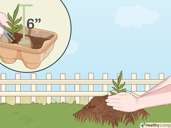 Пересадіть чорнобривці, коли вони досягнуть 15 см у висоту. висаджуйте чорнобривці в клумбу або в інший контейнер, коли рослини виростуть до 15 см, і будуть зміцнілими. Висаджуйте розсаду обережно, не пошкодити кореневу систему. [8]