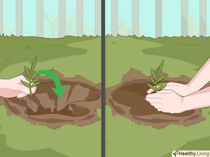 Помістіть рослину в ямку. Закопайте коріння чорнобривців землею і утрамбуйте грунт навколо рослини. Поливайте рослину з лійки біля основи до тих пір, поки земля навколо не стане вологою, але не надто сирою і затопленою.