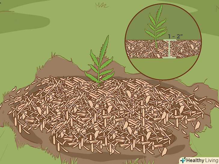 Замульчуйте грунт, щоб не росли бур'яни. розподіліть 2,5-5 см мульчі, соснової кори або іншого органічного матеріалу на клумбі між рослинами. Це також допоможе грунті зберігати вологу, так що вам не доведеться поливати чорнобривці часто. [9]