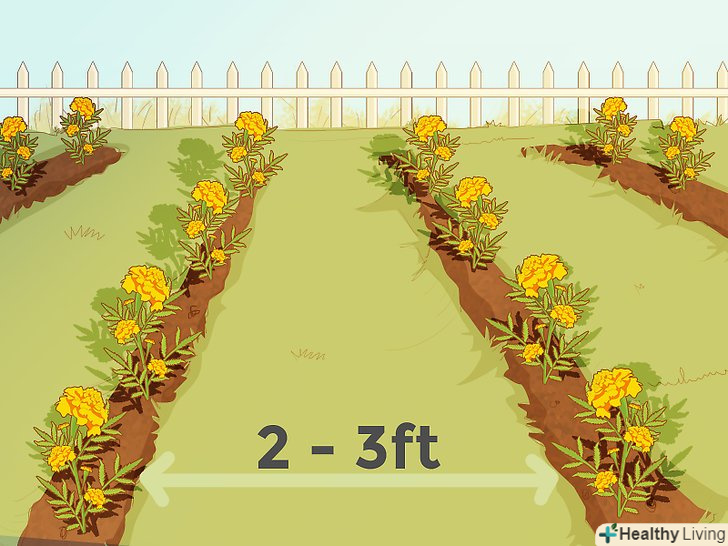 Визначте, де ви будете вирощувати чорнобривці. Чорнобривці добре ростуть в клумбах, в горщиках і в інших контейнерах, але їм потрібно місце для розростання. Дорослі рослини чорнобривців в клумбі повинні бути висаджені на відстані 60-90 см один від одного, щоб їм було просторо, і щоб кожна рослина отримувало достатньо сонячного світла. [1]- Найкраще чорнобривці ростуть на сонячному місці, проте, їх можна вирощувати і в півтіні. Чи не садіть чорнобривці на повністю тінистому ділянці, в тіні вони не будуть добре рости і пишно цвісти. [2]