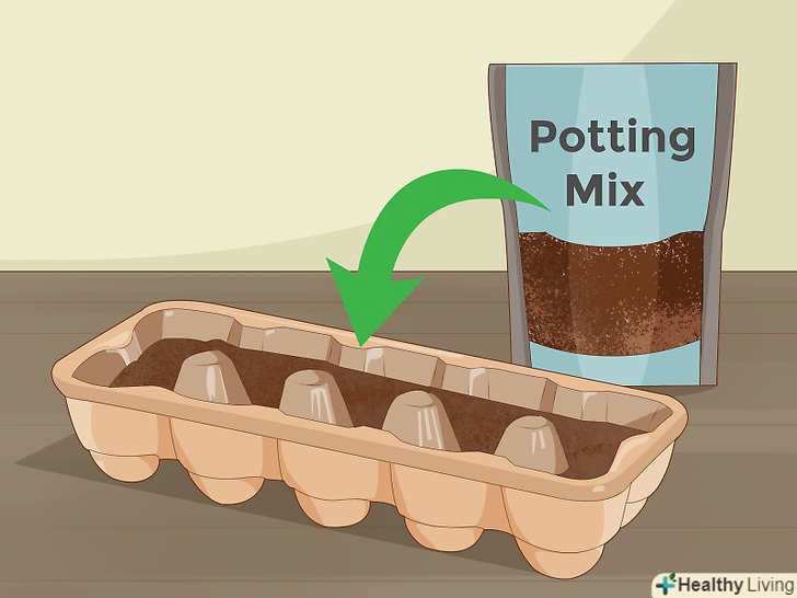 Використовуйте спеціальний контейнер для розсади, розділений на секції. поділ на секції зручно тим, що ви зможете з легкістю розділити розсаду, коли вона дасть коріння. Такі контейнери продаються практично у всіх садових і квіткових магазинах.- Ви можете використовувати картонну сітку від яєць, наповнивши осередки грунтом і висадивши туди насіння.