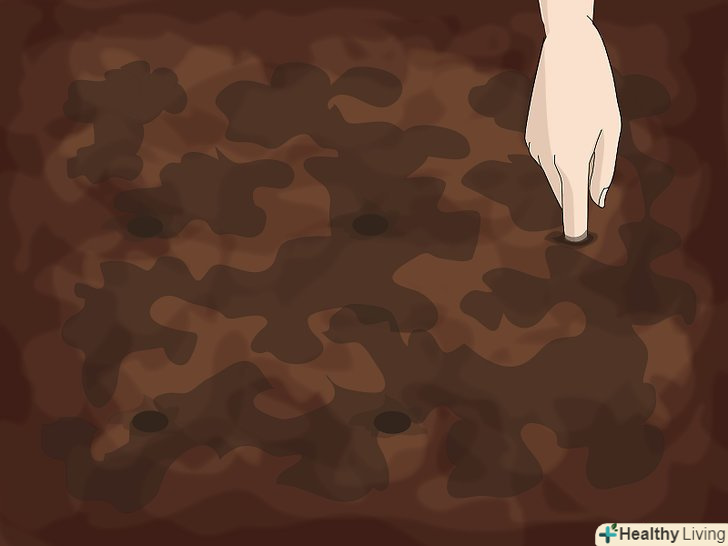 Втисніть палець в грунт на глибину приблизно 2.5 см. зробіть стільки ямок глибиною 2.5 см., скільки плануєте посадити насіння снігового гороху. Між ямками відстань повинна бути близько 5 см.