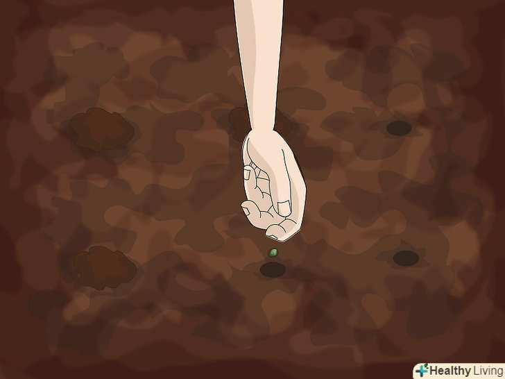 У кожну дірочку покладіть одне насіння і покрийте грунтовою сумішшю або грунтом.- Якщо вирощуєте сніговий горох рядами, кожен ряд повинен бути на відстані близько 45 см.один від одного, щоб у гороху було місце для зростання.