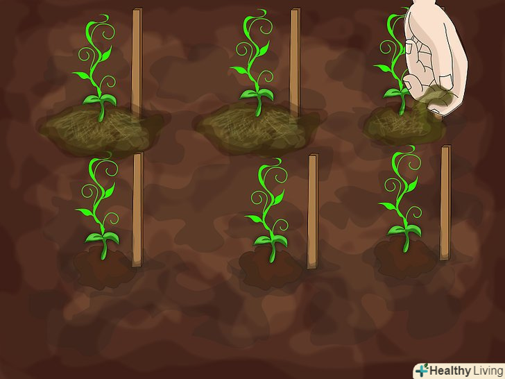 Встановіть поруч з насінням кол або шпалери, Якщо вирощуєте сорт, який росте дуже високим, наприклад, Орегон Джіант. карликові сорти, наприклад, Сноуберд (Snowbird), виростають до 0.6 м.у висоту і не потребують кілках або опорі. Подивіться на пакеті для насіння, щоб визначити, який сорт цукрового гороху ви будете садити.