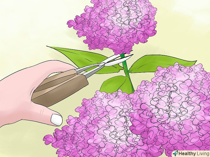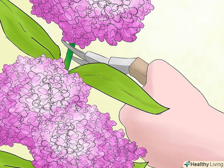 Обріжте гортензію, щоб зменшити її розміри. якщо Гортензія стала досить великою, ви можете обрізати її в червні або липні (відразу після цвітіння). Подрежьте гілки на 1/3 біля найближчого міжвузля. У більшості випадків гортензії швидко відростають, таким чином, ви не зможете довгий час зберігати невеликий розмір куща.- Цей тип обрізки не потрібен для підтримки здоров'я рослини. Робіть її, тільки якщо ваша Гортензія займає занадто багато місця. [2] коли будете садити нові гортензії, виберіть місце, де вони можуть рости вільно.