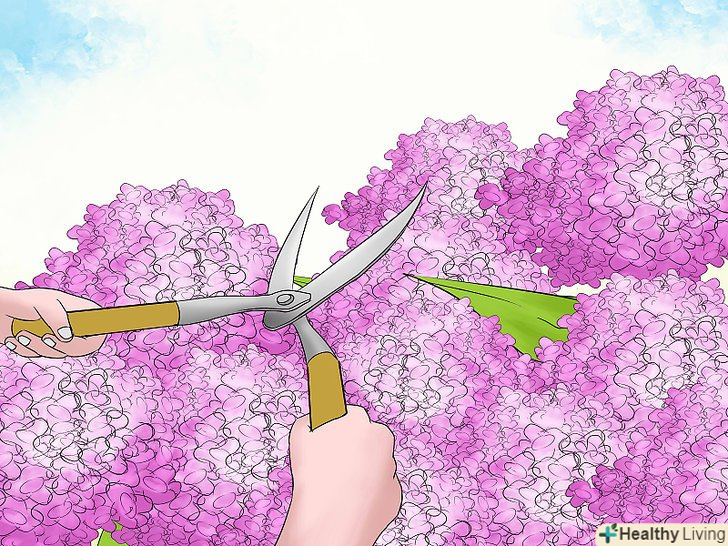 Робіть обрізку відразу ж після піку цвітіння. Так як ці види гортензій починають закладати квіткові бруньки незабаром після цвітіння, в кінці літа і ранньою осінню, важливо обрізати їх відразу ж після того, як квіти почнуть в'янути, в середині літа. Таким чином, ви можете зробити обрізку куща, перш ніж він почне закладати квіткові бруньки, які стануть квітами наступного року. Надалі знову вибираєте відповідний момент, щоб обрізати пагони наступного року. [1]- Якщо ви пропустили цей момент, просто відкладіть обрізку до наступного року. Гортензію не потрібно обрізати щороку, так що це не стане проблемою.