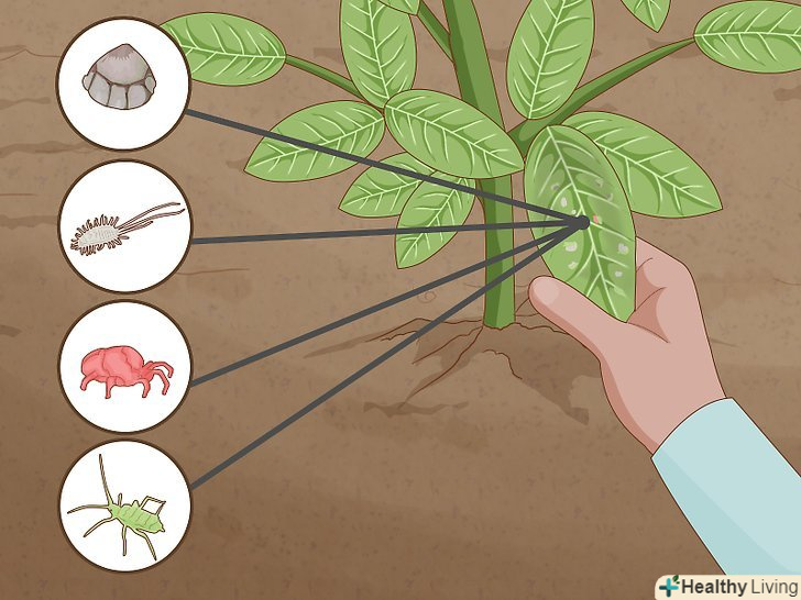 Слідкуйте за появою шкідників. хоча зазвичай жасмин не страждає від шкідників, все ж варто стежити, чи не з'явилися на ньому певні комахи, які можуть нашкодити рослині. Якщо ви помітите на жасмині наступних комах, зберіть їх вручну і залийте мильною водою або помийте листя жасмину мильним розчином або розчином води і масла ним:- Попелиця;
