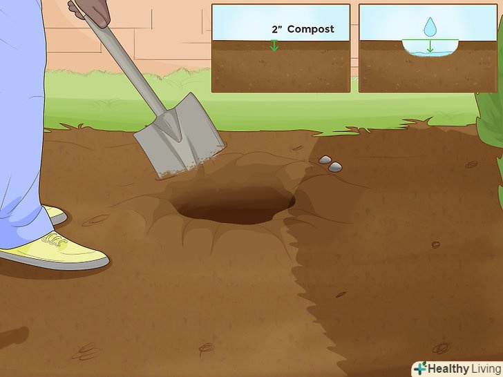 Підготуйте грунт до посадки. більшість сортів жасмину краще себе почувають в родючому грунті з хорошим дренажем. Будь то посадка жасмину у відкритий грунт або в контейнер, підготуйте землю, покривши її п'ятисантиметровим шаром компосту. Це забезпечить здорове цвітіння жасмину під час вегетативного періоду.- Якщо ви садите жасмин на вулиці, перевірте, чи хороший дренаж в обраному місці. Викопайте ямку і наповніть її водою. Якщо вода швидко йде з ямки, то дренаж у грунту хороший. Якщо вода застоюється і йде повільно, виберіть для посадки інше місце.