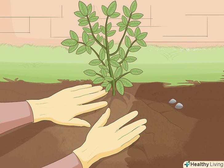 Посадіть жасмин. обережно вийміть саджанець з контейнера і полийте коріння. Викопайте ямку розміром з кореневий кому і посадіть в неї рослина. Злегка утрамбуйте землю навколо рослини, щоб воно краще прижилося. При необхідності додайте ще землі, щоб утримати рослину в прямому положенні.- Хоча найпростіше купити саджанці жасмину, його можна виростити і з насіння. Насіння жасмину мають низьку схожість і вимагають особливого догляду в залежності від сорту. У більшості випадків можна проростити насіння будинку в горщиках зі спеціальною сумішшю для пророщування насіння, а потім висадити розсаду на вулиці після весняних заморозків. [1]