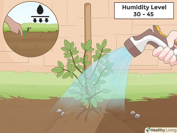 - Якщо жасмин росте в приміщенні, стежте не тільки за вологістю грунту, але і повітря. Ніжним різновидам жасмину необхідний рівень вологості в межах 30-45%. Використовуйте зволожувач повітря або регулярно обприскуйте рослину з пульверизатора. [6]