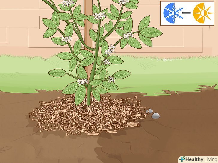 - Жасмин, що росте цілий рік в приміщенні, не вимагає мульчування. Однак важливо тримати його в сонячній кімнаті з постійною температурою 16-24 °с. [9]