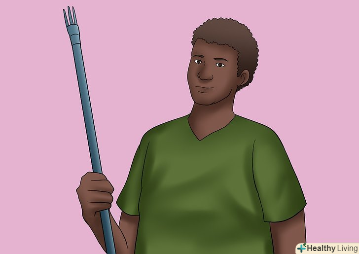 Ви можете спробувати збирати листя щупом. садівники можуть користуватися щупом для збору листя у важкодоступних місцях. Такий інструмент складається з прямої ручки і наконечника на кінці. У деяких садових магазинах можна купити такий інструмент або зробити його самостійно.- Такий інструмент легко зробити, якщо в ручку від старої мітли вбити цвях так, щоб він стирчав на кінці. Такий інструмент можна використовувати також для збору деякого дворового сміття.