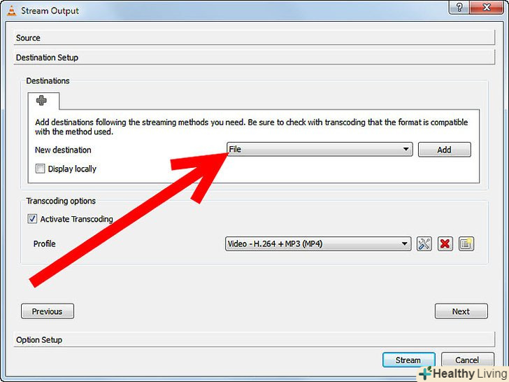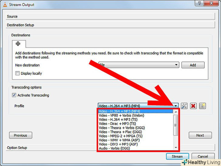 Змініть тип файлу (необов'язково).швидше за все, VLC буде створювати MP4-файли. Якщо вам потрібен інший тип файлів, виберіть його в меню.