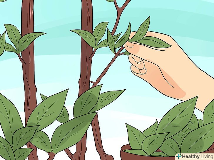 Придбайте саджанець лаврового дерева або зріжте живці. багато розплідників та садових центрів продають лаврове дерево у відділі рослин. Якщо ви віддаєте перевагу зрізати держак щоб розмножити рослину, тоді виконайте наступні дії:- Зріжте держак біля кореня молодого втечі або верхівки на початку літа або восени. Зрізайте у зрілого лаврового дерева. Держак повинен бути близько 8 см (3 дюйма) в довжину.