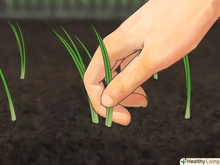 Збільште відстань між рослинами, якщо це необхідно. коли перші зелені пагони почнуть пробиватися, визначте, чи слід збільшити відстань між ними, щоб надати кожному трохи більше місця. Зелена цибуля добре росте в пучках, але для кращих результатів зрілі рослини повинні бути розташовані в 5-7 см один від одного. Погляньте на Вашу грядку і видаліть найслабші саджанці, якщо це необхідно.