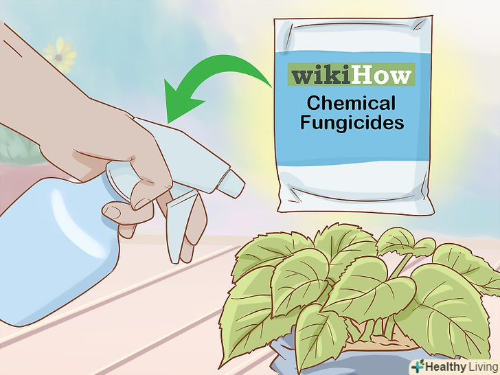З обережністю користуйтеся хімічними фунгіцидами. хімічні фунгіциди можуть бути досить ефективними, однак вони здатні викликати інші проблеми. Вони можуть завдати шкоди живуть в грунті живим організмам, а також бджолам і іншим корисним для вашого саду комахою. Крім того, після обробки такими фунгіцидами зібраний урожай може виявитися небезпечним для здоров'я, тому дотримуйтесь вказівок щодо застосування, якщо ви обприскуєте їстівні рослини. [10]- Органічні фунгіциди легко зробити в домашніх умовах, тому краще спочатку спробувати їх, перш ніж використовувати хімічні засоби.