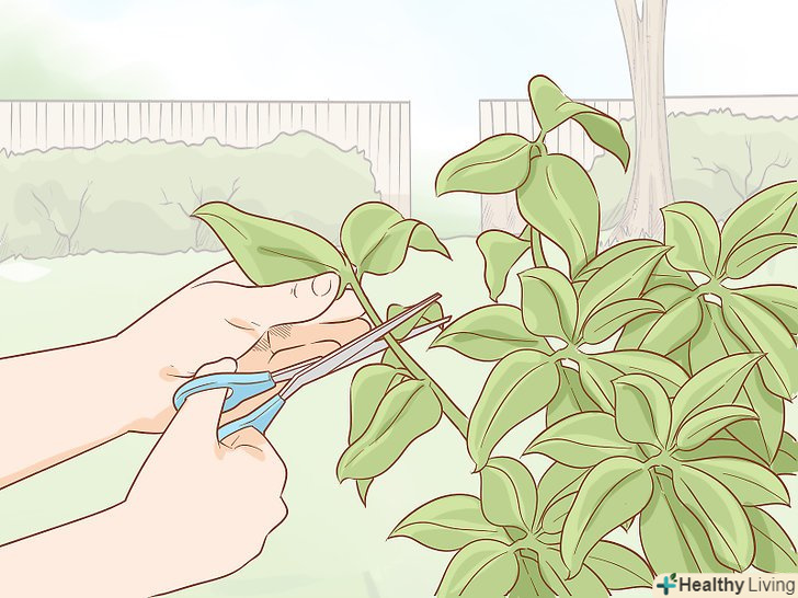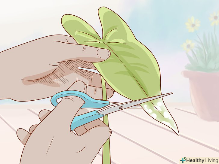 Видаліть заражені нижні листя, щоб запобігти поширенню борошнистої роси. якщо ви вчасно виявите борошнисту цвіль, можна обрізати заражені листя садовими або простими ножицями, щоб захворювання не поширилося далі. Не кладіть зрізані листя в компост, так як через нього борошниста роса може знову потрапити на рослини. [11]- Викиньте заражені листя в сміття, щоб борошниста роса не поширилася далі.
