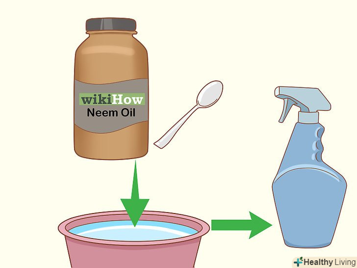 Спробуйте використовувати розчин масла німа. Нім, або маргоза - це рослина, масло якого володіє інсектицидними і фунгіцидними властивостями. Розведіть в 1 літрі води 1 чайну ложку (5 мілілітрів) масла німа і 0,5 чайної ложки (2,5 мілілітра) мила для посуду. Щоб використовувати розчин, перелийте його в чистий пульверизатор. [2]- Масло німа можна придбати в магазині здорового харчування або замовити через Інтернет.