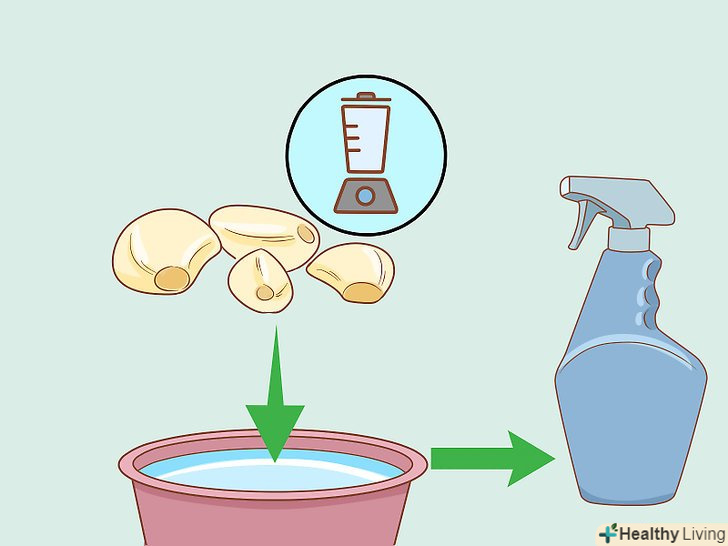 Приготуйте розчин часнику у воді. почистіть дві головки часнику, покладіть їх в блендер, залийте 1 літром води і перемішайте на високій швидкості протягом 5-10 хвилин. Процідіть суміш через марлю. Перш ніж використовувати розчин, розбавте його водою (1 частина суміші на 9 частин води) і залийте в пульверизатор. [4]- Зберігайте нерозбавлений розчин часнику в ємності в холодильнику.