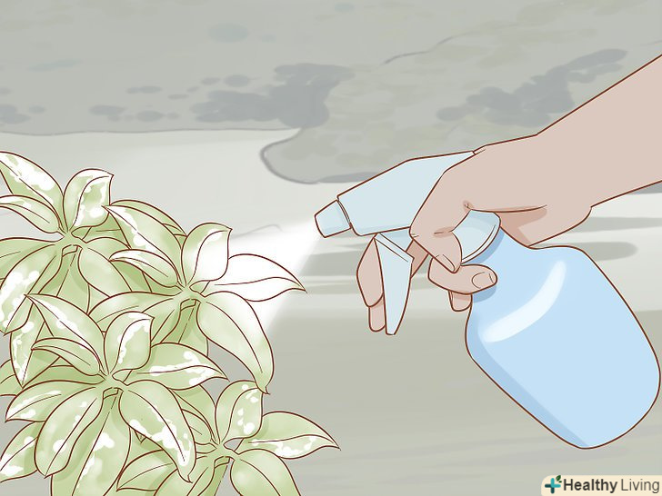 Зачекайте, поки спрей стече з листя. кожен раз, коли ви використовуєте домашній спрей, рясно обприскуйте кожен заражений лист, щоб з нього стікала рідина. Не витирайте листя: почекайте, поки спрей стече і висохне. [9]