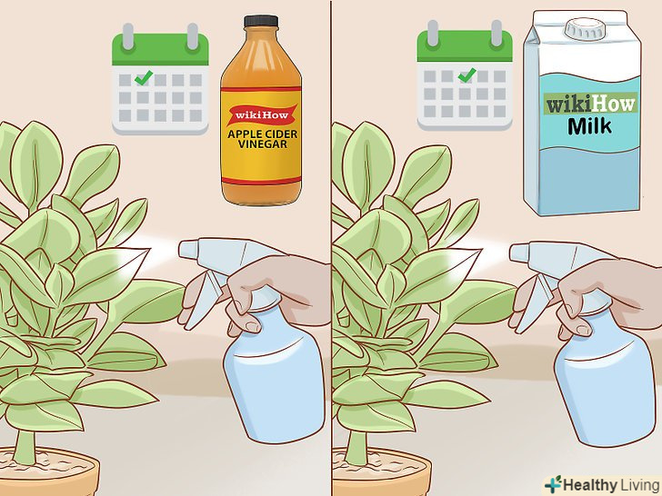 Міняйте спреї, щоб у борошнистої роси не виробилося опір до одного з них. Грибок може пристосуватися до того чи іншого засобу, і воно стане неефективним. Якщо ви підберете пару ефективних спреїв, чергуйте їх, щоб у борошнистої роси не виробилася резистентність до одного з них. [6]- Наприклад, один тиждень обприскуйте рослини спреєм з харчовою содою, а протягом другого тижня використовуйте спрей з молоком або оцтом.