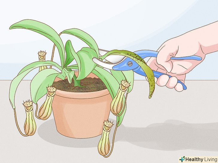 Підтримуйте благополуччя м'ясоїдної рослини. крім поливу, вологості та годування, збереження м'ясоїдної рослини в хорошій формі вимагає, щоб у них були можливості для зростання, і вони перебували під захистом:- Обріжте все сухе листя ножицями, коли починається зима, період спокою. Їх період спокою залежить від виду, але, як правило, триває близько 3-5 місяців протягом зими. Цей час вони повинні зберігатися в більш холодному і сухому місці, ніж зазвичай.