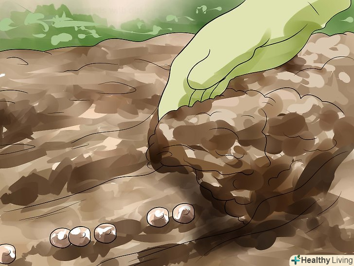 Присипте насіння землею. поклавши насіння на грунт, прикрийте їх невеликим шаром грунту, злегка ущільнивши її. Для визначення конкретної товщини цього шару загляньте в інструкцію, прикладену до насіння [12] .