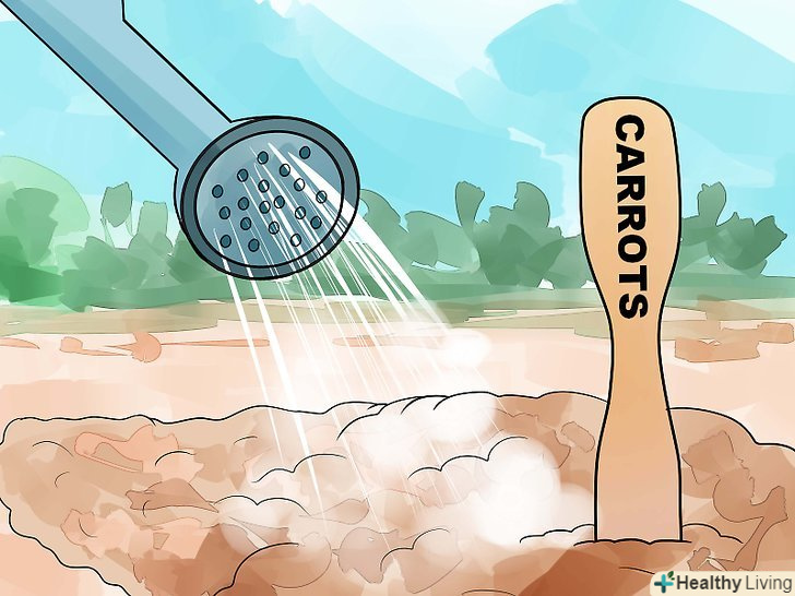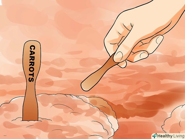 Позначте засіяні ряди. щоб не забути, де що висаджено, помістіть мітки в кінці кожного ряду, або на кожен контейнер. Наприклад, можна написати назви овочів на паличках для морозива, встромивши потім ці палички в землю в кінці кожного ряду або контейнера [13] .